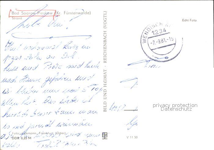 72367611 alte Postkarte Bad Saarow-Pieskow Strand Neptunbad Scharmuetzelsee postalisch gelaufen Erhaltung siehe scans KatCode: 11110012067024
