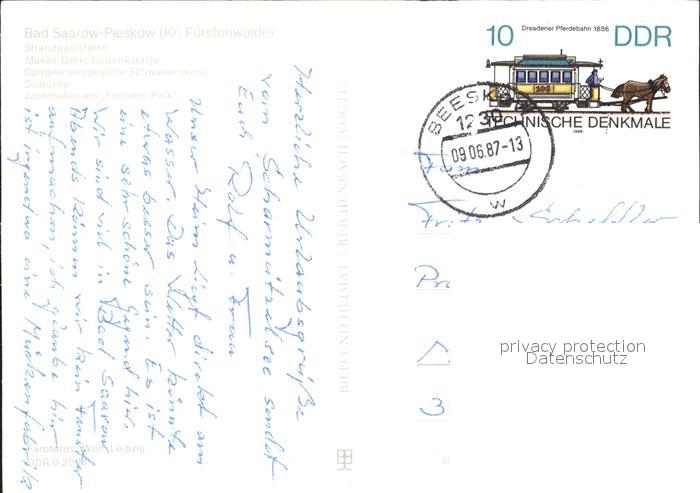 72286137 alte Postkarte Bad Saarow-Pieskow Strandgaststaette Dampferanlegestelle Schwanenwiese postalisch gelaufen Erhaltung siehe scans KatCode: 11110012067024