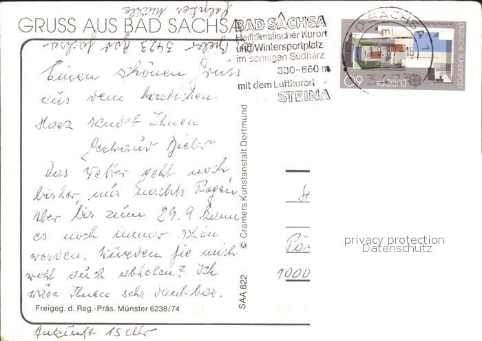 71859957 alte Postkarte Bad Sachsa Harz postalisch gelaufen Erhaltung siehe scans KatCode: 11110003156003