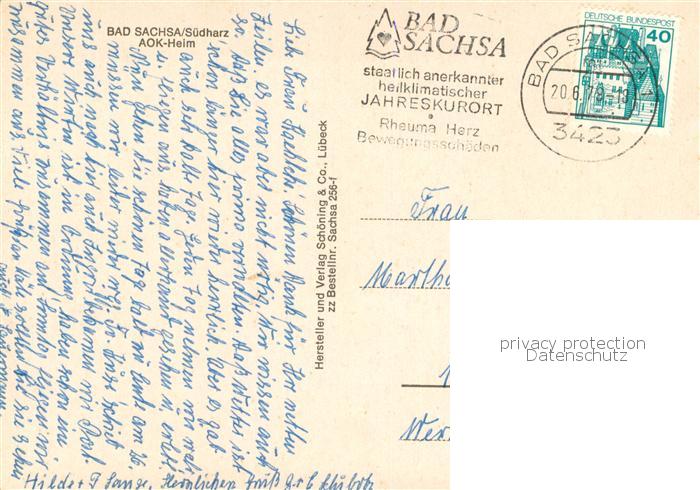 73769538 alte Postkarte Bad Sachsa Harz AOK Heim postalisch gelaufen Erhaltung siehe scans [WerneD78] KatCode: 11110003156003