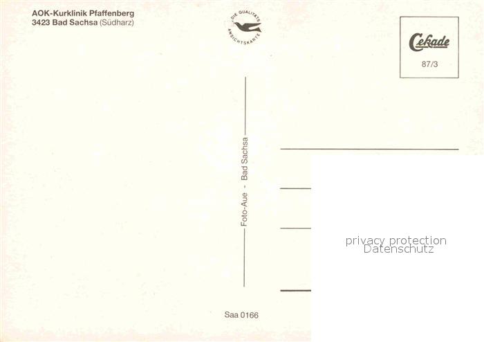 72800700 Bad Sachsa Harz AOK Kurklinik Pfaffenberg postalisch nicht gelaufen Erhaltung siehe scans [FriedD77] KatCode: 11110003156003