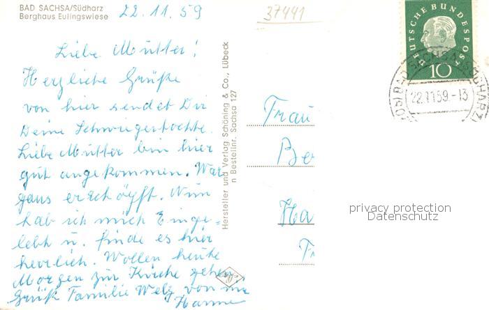 73759546 alte Postkarte Bad Sachsa Harz Berghaus Eulingswiese Fachwerkstil postalisch gelaufen Erhaltung siehe scans [LiesaD40] KatCode: 11110003156003