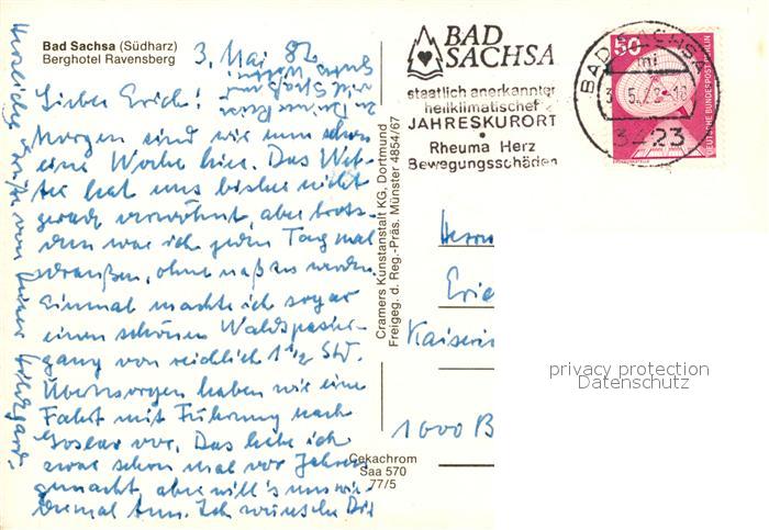 73108176 alte Postkarte Bad Sachsa Harz Berghotel Ravensberg postalisch gelaufen Erhaltung siehe scans [NatalD47] KatCode: 11110003156003