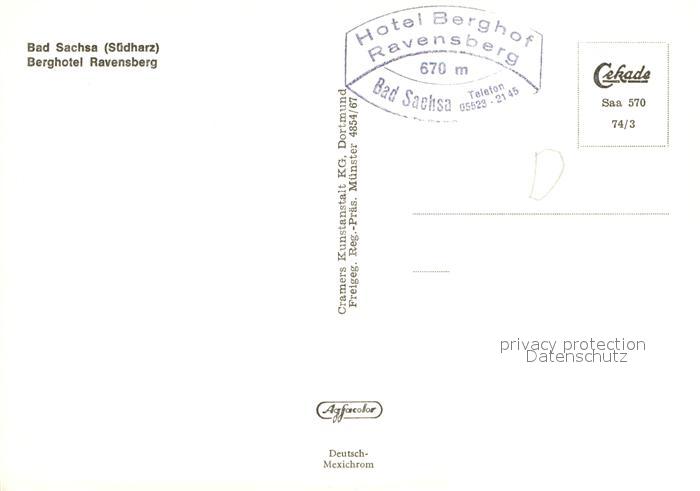 72964668 Bad Sachsa Harz Berghotel Ravensberg Landschaftspanorama postalisch nicht gelaufen Erhaltung siehe scans [FriedD77] KatCode: 11110003156003