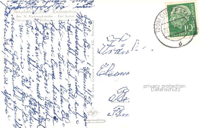 73541256 alte Postkarte Bad Sachsa Harz Berghotel Zum Katzenstein postalisch gelaufen Erhaltung siehe scans [KathaD81] KatCode: 11110003156003