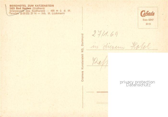 73615298 Bad Sachsa Harz Berghotel Zum Katzenstein Teich Gaststube postalisch nicht gelaufen Erhaltung siehe scans [WerneD78] KatCode: 11110003156003