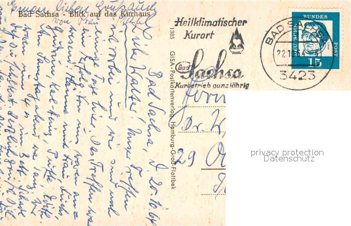 72786861 alte Postkarte Bad Sachsa Harz Blick auf das Kurhaus postalisch gelaufen Erhaltung siehe scans [FriedD77] KatCode: 11110003156003