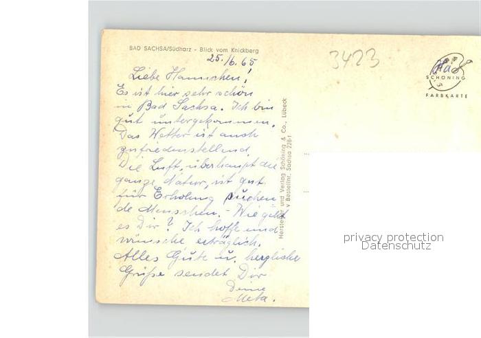 41619989 Bad Sachsa Harz Blick vom Knickberg postalisch nicht gelaufen Erhaltung siehe scans KatCode: 11110003156003
