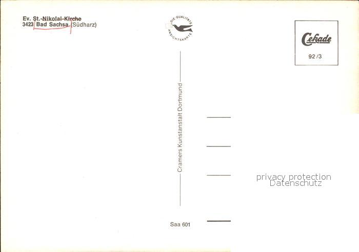 72378750 Bad Sachsa Harz Evangelische Sankt Nikolai Kirche postalisch nicht gelaufen Erhaltung siehe scans KatCode: 11110003156003