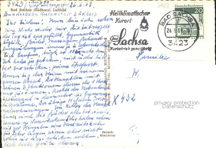 71991435 alte Postkarte Bad Sachsa Harz Fliegeraufnahme postalisch gelaufen Erhaltung siehe scans KatCode: 11110003156003