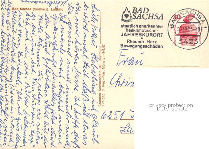 73230413 alte Postkarte Bad Sachsa Harz Fliegeraufnahme postalisch gelaufen Erhaltung siehe scans [FriedD77] KatCode: 11110003156003