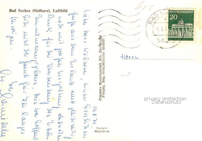 73015216 alte Postkarte Bad Sachsa Harz Fliegeraufnahme postalisch gelaufen Erhaltung siehe scans [NatalD47] KatCode: 11110003156003