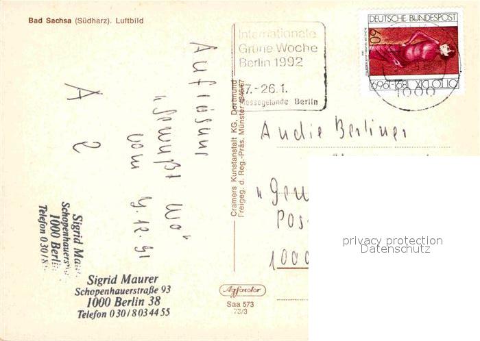 72915652 alte Postkarte Bad Sachsa Harz Fliegeraufnahme postalisch gelaufen Erhaltung siehe scans [NatalD47] KatCode: 11110003156003