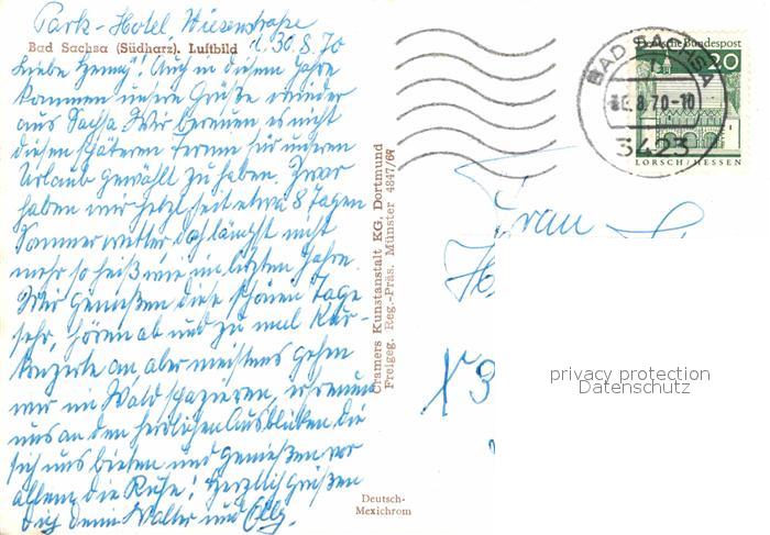 72752431 alte Postkarte Bad Sachsa Harz Fliegeraufnahme postalisch gelaufen Erhaltung siehe scans [FriedD77] KatCode: 11110003156003