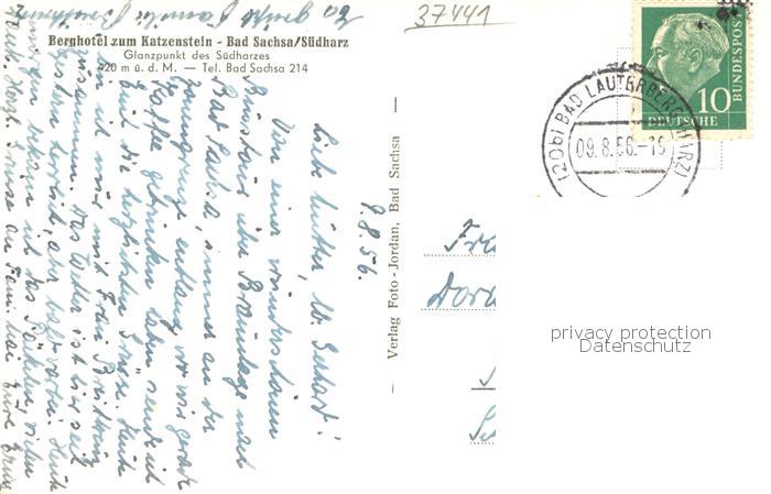73763398 alte Postkarte Bad Sachsa Harz Fliegeraufnahme Berghotel Katzenstein m. Ravensberg postalisch gelaufen Erhaltung siehe scans [LiesaD40] KatCode: 11110003156003