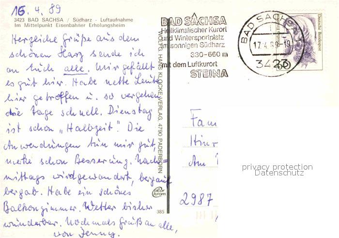 72898841 alte Postkarte Bad Sachsa Harz Fliegeraufnahme Eisenbahner Erholungsheim postalisch gelaufen Erhaltung siehe scans [FriedD77] KatCode: 11110003156003