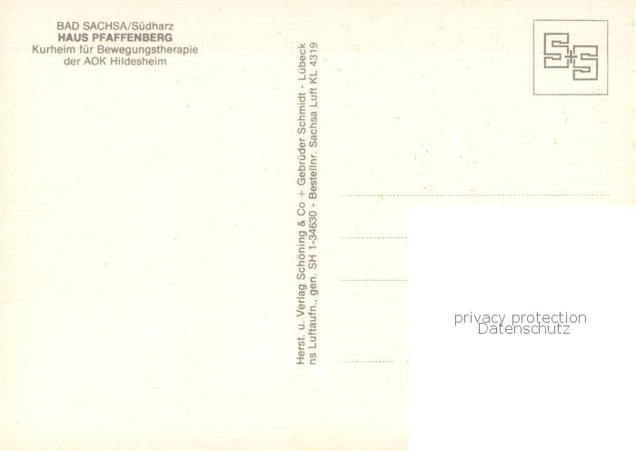 73766005 Bad Sachsa Harz Fliegeraufnahme Haus Pfaffenberg Kurheim postalisch nicht gelaufen Erhaltung siehe scans [LiesaD40] KatCode: 11110003156003