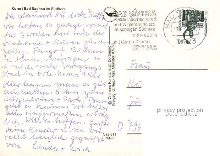 73165241 alte Postkarte Bad Sachsa Harz Fliegeraufnahme Kurklinik postalisch gelaufen Erhaltung siehe scans [KathaD81] KatCode: 11110003156003