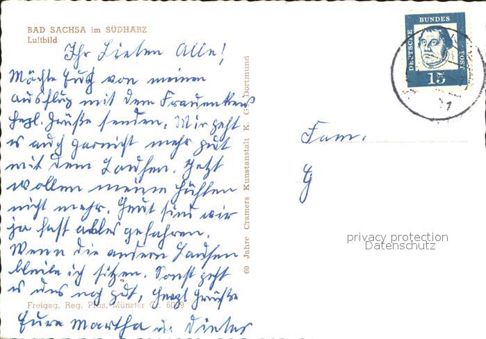 72516719 alte Postkarte Bad Sachsa Harz Fliegeraufnahme mit See postalisch gelaufen Erhaltung siehe scans KatCode: 11110003156003