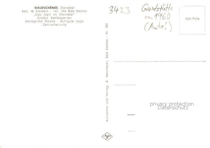 73857919 Bad Sachsa Harz Gaststaette Waldschaenke im Steinatal postalisch nicht gelaufen Erhaltung siehe scans [FriedD77] KatCode: 11110003156003