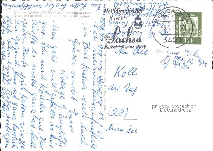 72000785 alte Postkarte Bad Sachsa Harz Genesungsheim Pfaffenberg postalisch gelaufen Erhaltung siehe scans KatCode: 11110003156003