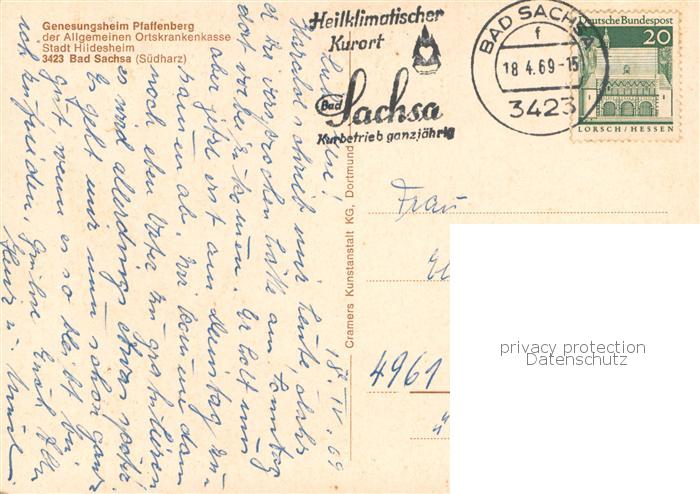 73764427 alte Postkarte Bad Sachsa Harz Genesungsheim Pfaffenberg Haus Buchenried Haus Tanneck postalisch gelaufen Erhaltung siehe scans [FriedD77] KatCode: 11110003156003