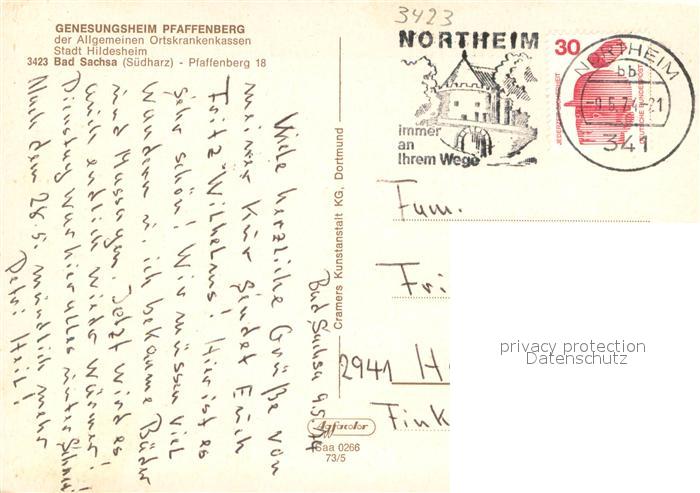 73688371 alte Postkarte Bad Sachsa Harz Genesungsheim Pfaffenberg postalisch gelaufen Erhaltung siehe scans [FriedD77] KatCode: 11110003156003
