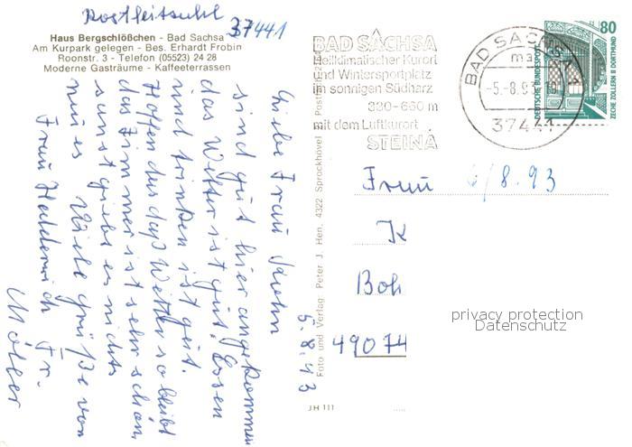 73860098 alte Postkarte Bad Sachsa Harz Haus Bergschloesschen Gastraeume Theke postalisch gelaufen Erhaltung siehe scans [WerneD78] KatCode: 11110003156003