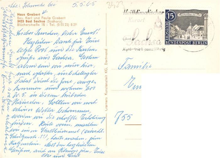 73949385 alte Postkarte Bad Sachsa Harz Haus Grabert Gastraeume Terrasse postalisch gelaufen Erhaltung siehe scans [WerneD78] KatCode: 11110003156003