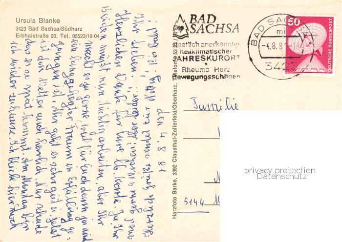 73844966 alte Postkarte Bad Sachsa Harz Haus Ulfrita Park Garten postalisch gelaufen Erhaltung siehe scans [WerneD78] KatCode: 11110003156003