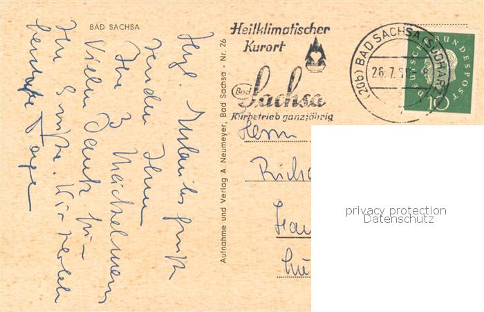 73763850 alte Postkarte Bad Sachsa Harz Haus Westfalen Partie am Schmelzteich postalisch gelaufen Erhaltung siehe scans [WerneD78] KatCode: 11110003156003