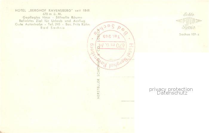 72982010 Bad Sachsa Harz Hotel Berghof Ravensberg postalisch nicht gelaufen Erhaltung siehe scans [FriedD77] KatCode: 11110003156003