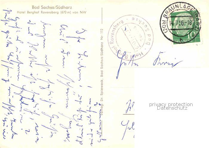 72912580 alte Postkarte Bad Sachsa Harz Hotel Berghof Ravensberg postalisch gelaufen Erhaltung siehe scans [WerneD78] KatCode: 11110003156003