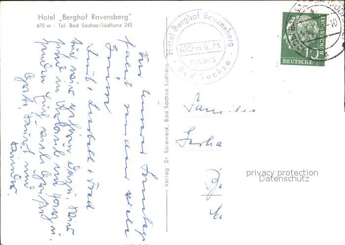 72507889 alte Postkarte Bad Sachsa Harz Hotel Berghof Ravensberg postalisch gelaufen Erhaltung siehe scans KatCode: 11110003156003