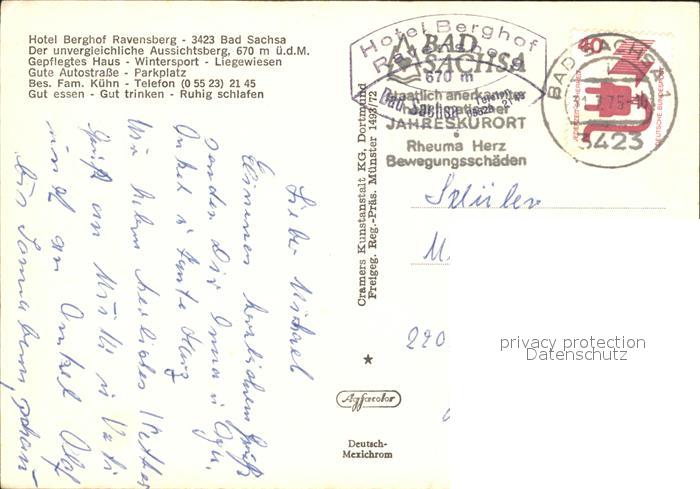 72288362 alte Postkarte Bad Sachsa Harz Hotel Berghof Ravensberg postalisch gelaufen Erhaltung siehe scans KatCode: 11110003156003