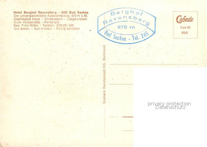 73013508 Bad Sachsa Harz Hotel Berghof Ravensberg postalisch nicht gelaufen Erhaltung siehe scans [NatalD47] KatCode: 11110003156003