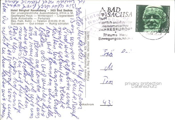 72237072 alte Postkarte Bad Sachsa Harz Hotel Berghof Ravensberg Aussichtsberg Fliegeraufnahme postalisch gelaufen Erhaltung siehe scans KatCode: 11110003156003