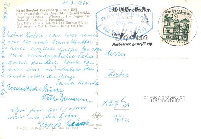 73332459 alte Postkarte Bad Sachsa Harz Hotel Berghof Ravensberg Fliegeraufnahme postalisch gelaufen Erhaltung siehe scans [WerneD78] KatCode: 11110003156003