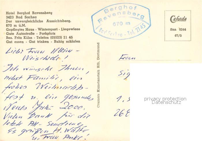 73719550 Bad Sachsa Harz Hotel Berghof Ravensberg im Winter postalisch nicht gelaufen Erhaltung siehe scans [FriedD77] KatCode: 11110003156003