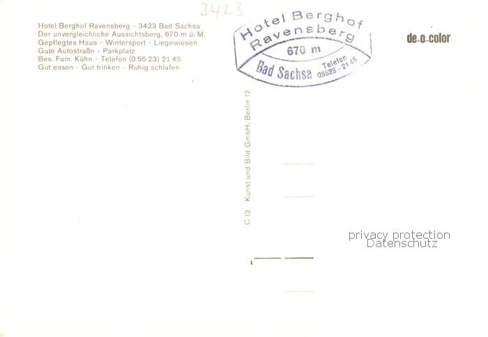 73866793 Bad Sachsa Harz Hotel Berghof Ravensberg Restaurant postalisch nicht gelaufen Erhaltung siehe scans [FriedD77] KatCode: 11110003156003