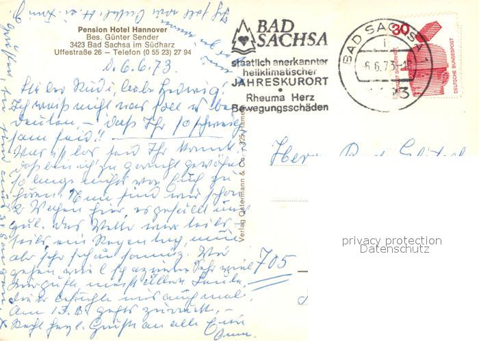 73129441 alte Postkarte Bad Sachsa Harz Hotel Hannover postalisch gelaufen Erhaltung siehe scans [PaolaD17] KatCode: 11110003156003