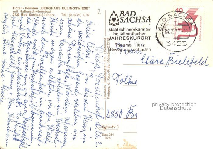 72585435 alte Postkarte Bad Sachsa Harz Hotel Pension Berghaus Eulingwiese postalisch gelaufen Erhaltung siehe scans [AndreD76] KatCode: 11110003156003