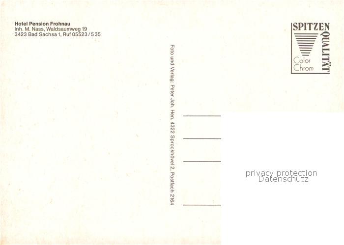 73089104 Bad Sachsa Harz Hotel-Pension Frohnau postalisch nicht gelaufen Erhaltung siehe scans [PaolaD17] KatCode: 11110003156003