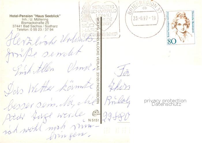 73845844 alte Postkarte Bad Sachsa Harz Hotel Pension Haus Seeblick Parkanlagen Fontaene postalisch gelaufen Erhaltung siehe scans [FriedD77] KatCode: 11110003156003