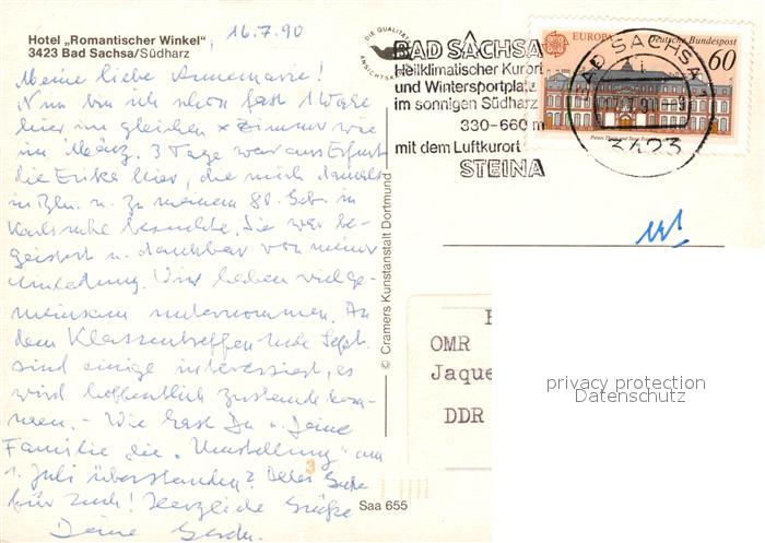 73173694 alte Postkarte Bad Sachsa Harz Hotel Romantischer Winkel postalisch gelaufen Erhaltung siehe scans [LiesaD40] KatCode: 11110003156003