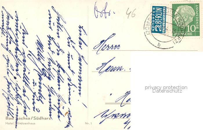 73279370 alte Postkarte Bad Sachsa Harz Hotel Schuetzenhaus postalisch gelaufen Erhaltung siehe scans [LiesaD40] KatCode: 11110003156003