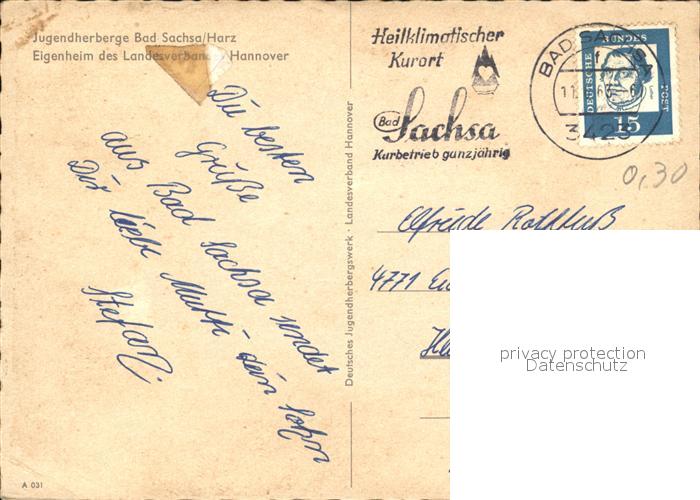 72526710 alte Postkarte Bad Sachsa Harz Jugendherberge postalisch gelaufen Erhaltung siehe scans KatCode: 11110003156003
