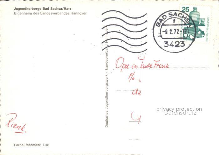 72504175 alte Postkarte Bad Sachsa Harz Jugendherberge