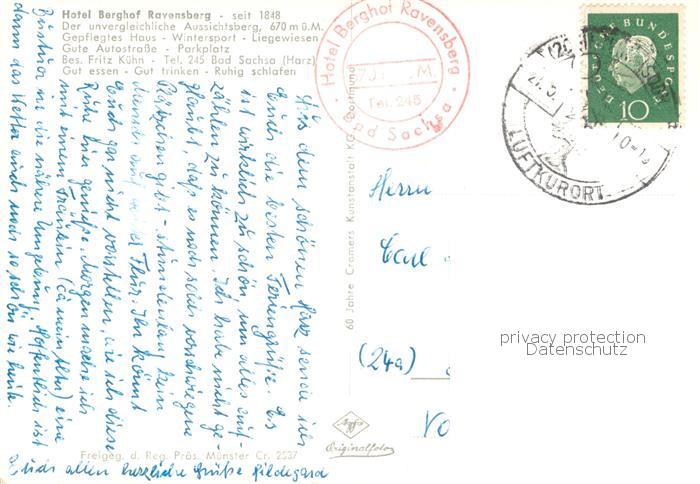 73774707 alte Postkarte Bad Sachsa Harz Katzenstein mit Ravensberg Fliegeraufnahme postalisch gelaufen Erhaltung siehe scans [WerneD78] KatCode: 11110003156003