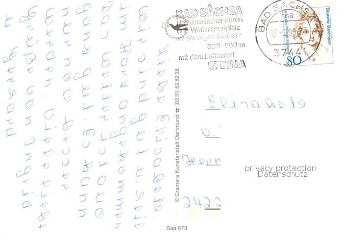 73268959 alte Postkarte Bad Sachsa Harz Kirche Ravensberg Aussichtsturm Romantischer Winkel Schmelzteich Marktstrasse postalisch gelaufen Erhaltung siehe scans [FriedD77] KatCode: 11110003156003